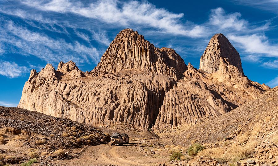 Po snídani opustíme Tamanrasset a vydáme se terénními vozidly 4×4 do pohoří Hoggar , které nás přivítá drsnou krásou Sahary.