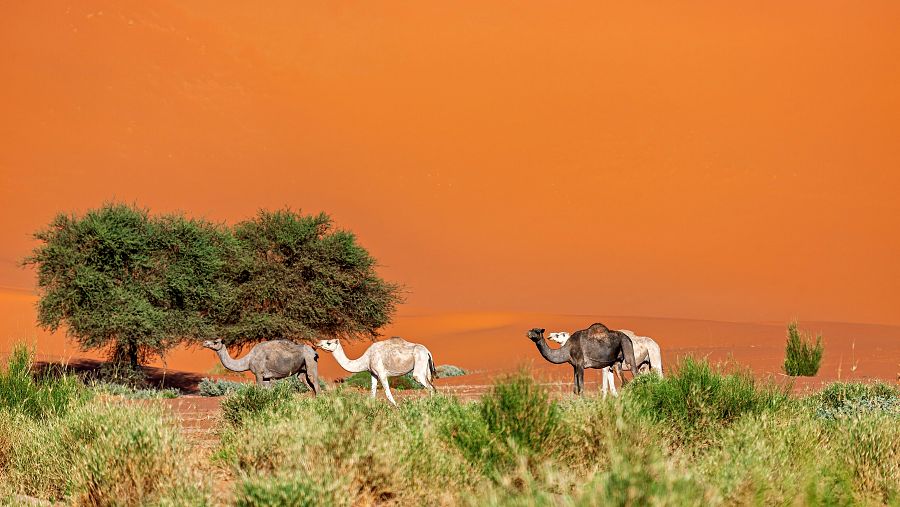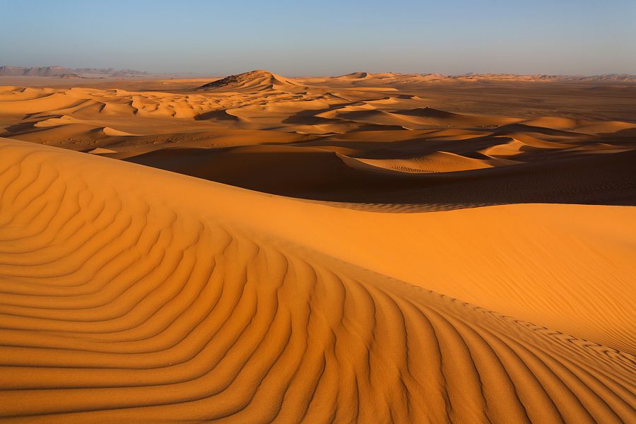 Ještě za tmy opustíme ubytování a vydáme se na nenáročný výstup ke skalní vyhlídce, odkud budeme sledovat, jak se slunce pomalu zvedá nad horizont Sahary . První paprsky světla postupně odhalují rozlehlou krajinu ticha – nekonečné kamenné pláně, písečné duny a tajemné siluety skalních útvarů.