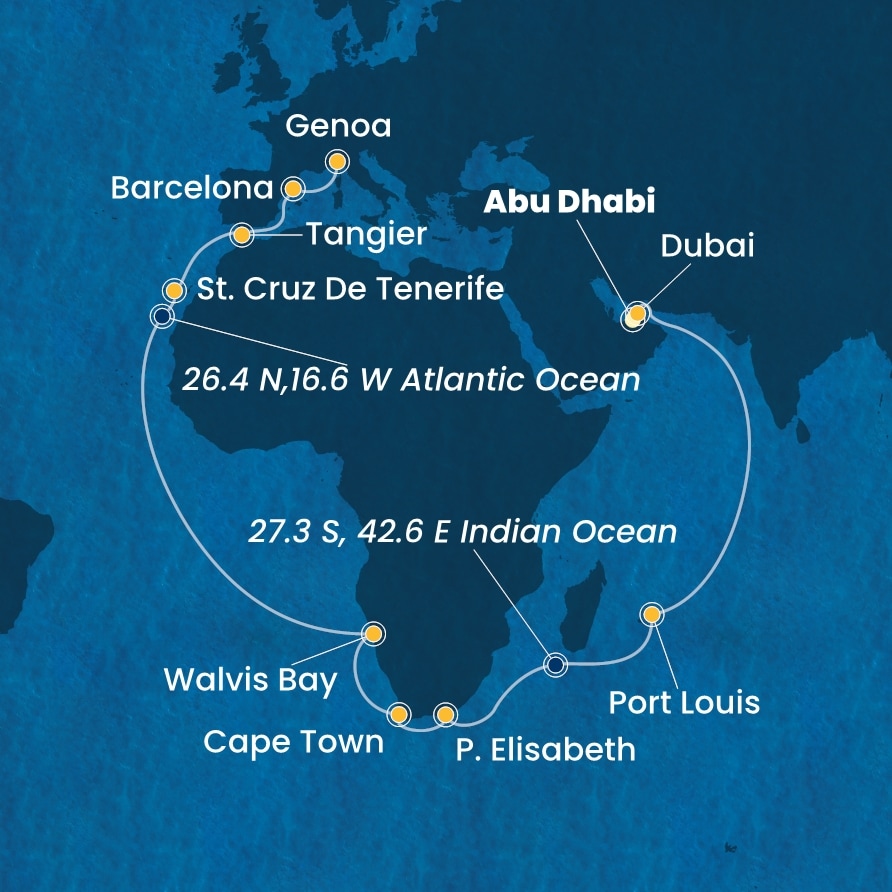 | 15. den | Port Elizabeth (Jihoafrická r.) | 08:00 | 20:00 |