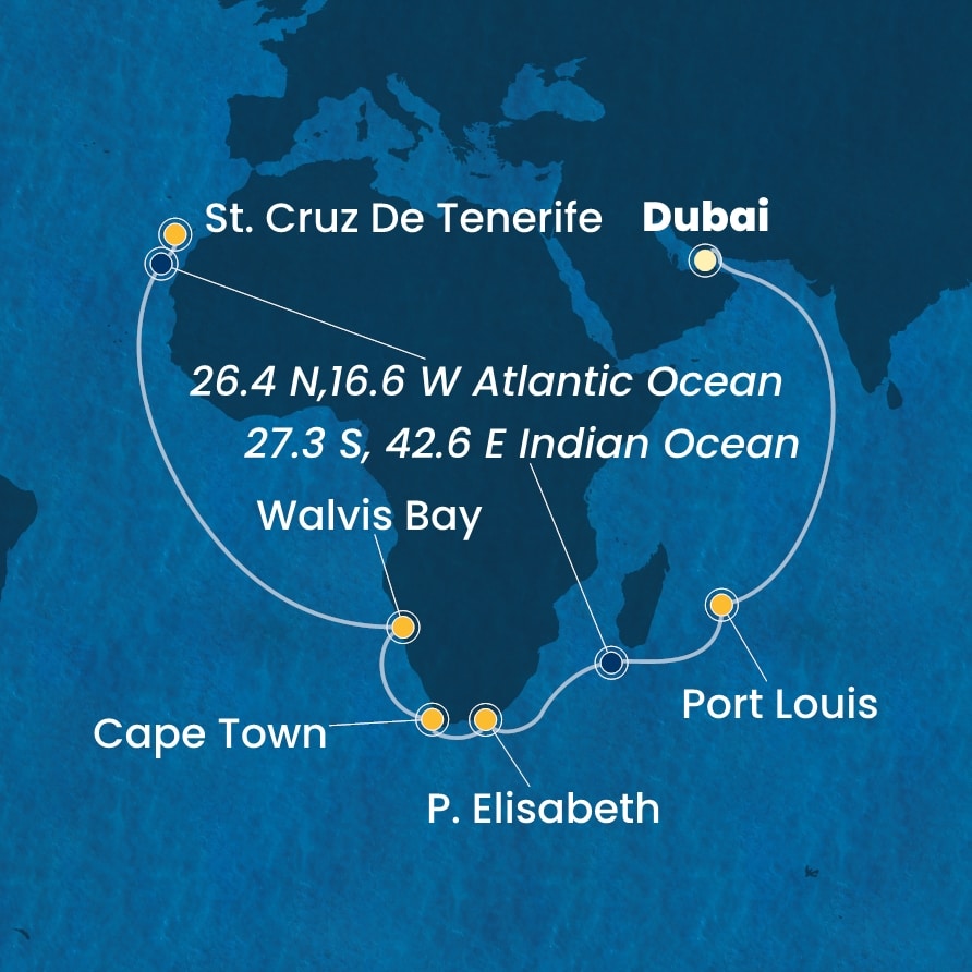 | 14. den | Port Elizabeth (Jihoafrická r.) | 08:00 | 20:00 |