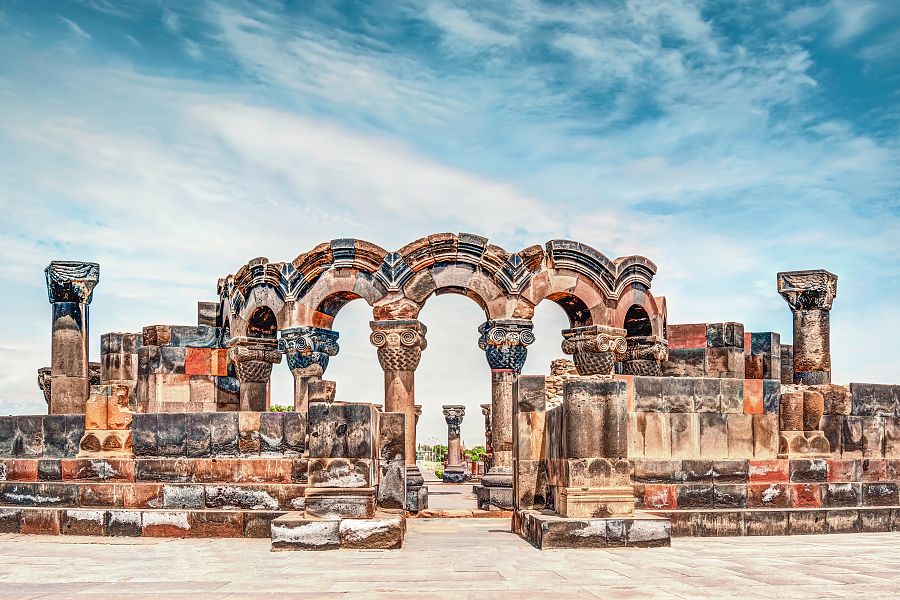 Cestou zpět navštívíme chrám Zvartnots . Tato stavba je uvedena na seznamu světového dědictví UNESCO i přesto, že byla v 10. století pobořena a jeji působivá zřícenina vykopána a částečně zrekonstruována až ve 20. století.