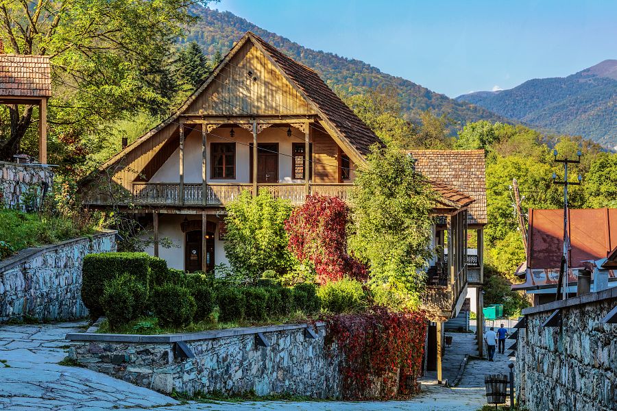 Dále budeme pokračovat na sever, projedeme tunelem a spatříme úplně jinou krajinu. Oblast Dilidžan , přezdívané také jako Arménské Švýcarsko . Místo obklopují bujné dubové a habrové lesy na pozadí zasněžených vrcholků hor.