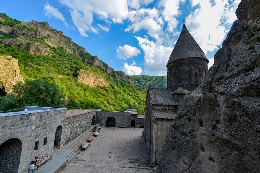 Poté se dostaneme k jednomu z nejúžasnějších klášterů v Arménii – Geghard , zapsaný na seznamu světového dědictví UNESCO . Nazývá se také Ayrivank , což znamená „kostel vytesaný ze skály“. Panuje zde mýtus o léčivém zdroji církve, podle kterého dokáže vyléčit jakoukoli nemoc. Klášter Geghard je nejlepším místem pro zpěv duchovní písně, kvůli jeho akustice. Před klášterem vedle říčky se nachází tzv. matagh, tedy obětiště, používáné především v neděli, kdy spousta lidí cestuje kvůli bohoslužbě nebo obětovat beránka.