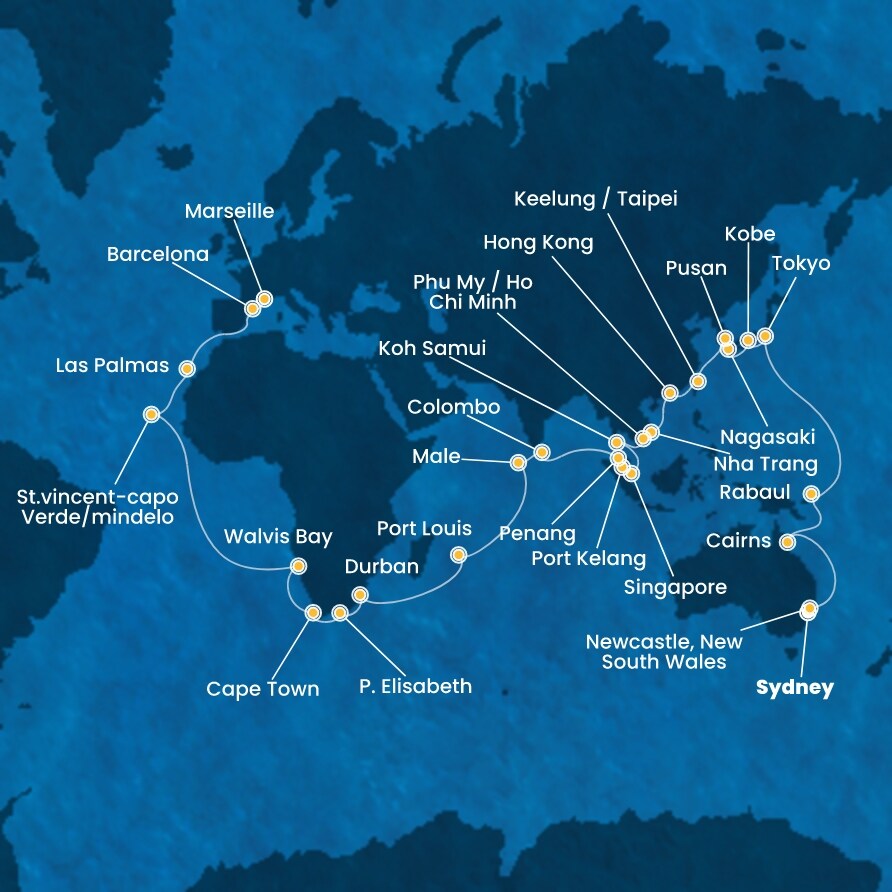 | 53. den | Port Elizabeth (Jihoafrická r.) | 06:00 | 18:30 |