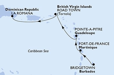 | 5. den | La Romana (Dominikán.rep.) | 09:00 | - |