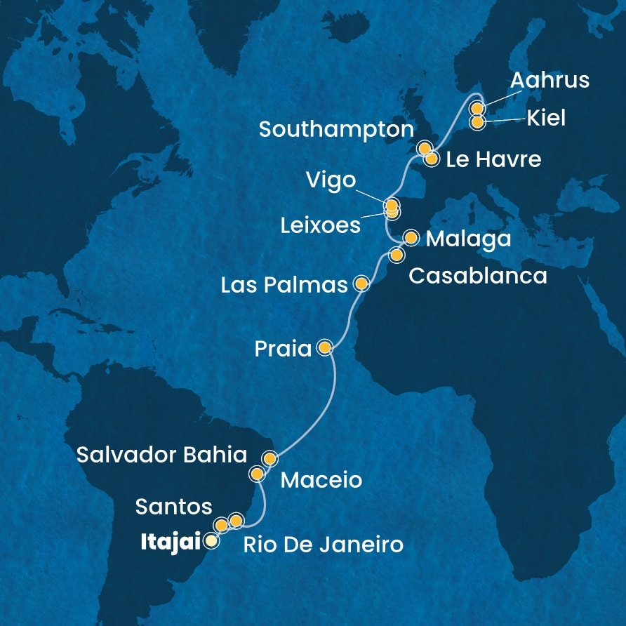 | 7. den | Maceio (Brazílie) | 12:00 | 20:00 |