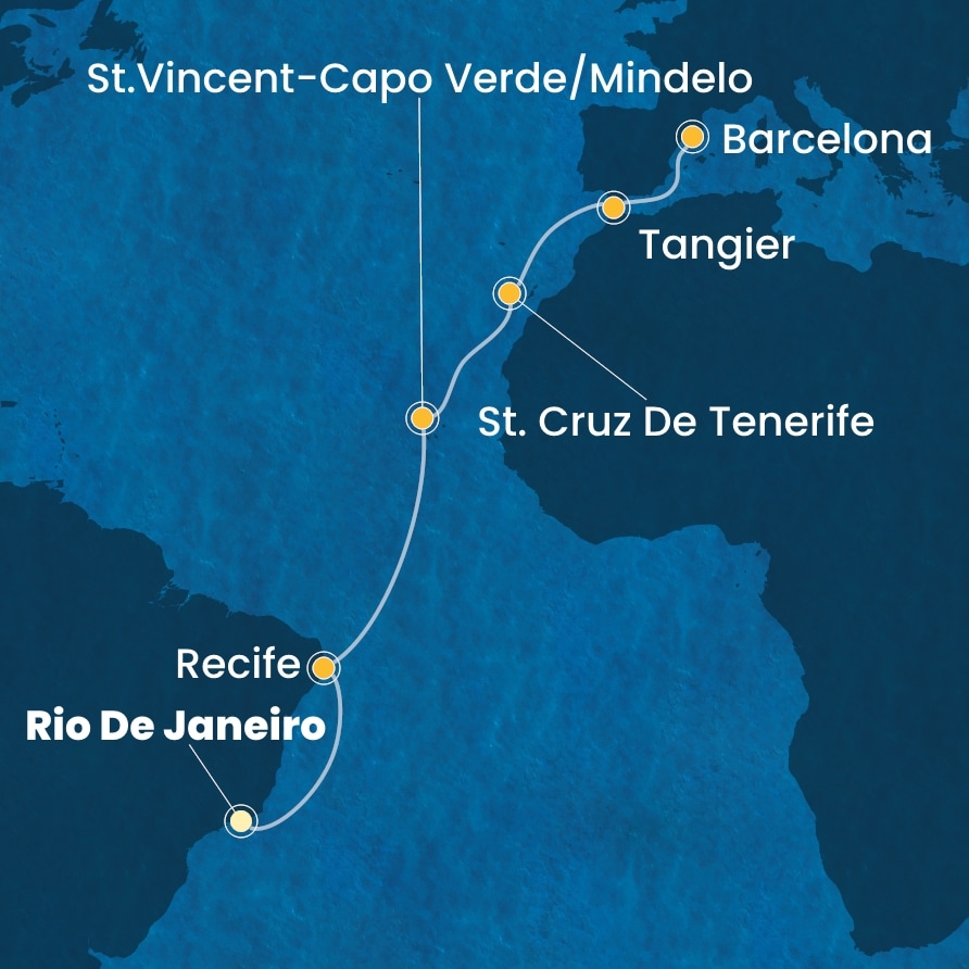 | 4. den | Recife (Brazílie) | 10:00 | 18:00 |