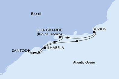 | 5. den | Ilhabela (Brazílie) | 07:00 | 19:00 |