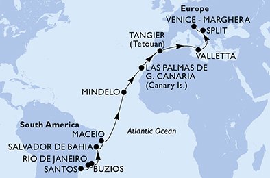 | 5. den | Salvador de Bahia (Brazílie) | 09:00 | 17:00 |