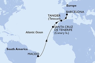 | 10. den | Tangier (Maroko) | 08:00 | 19:00 |