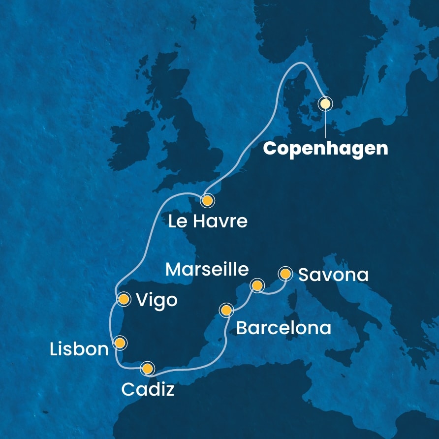 | 6. den | Vigo (Španělsko) | 10:00 | 20:00 |