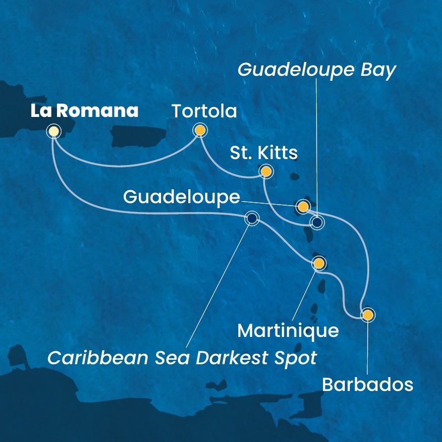 | 8. den | La Romana (Dominikán.rep.) | 09:00 | - |