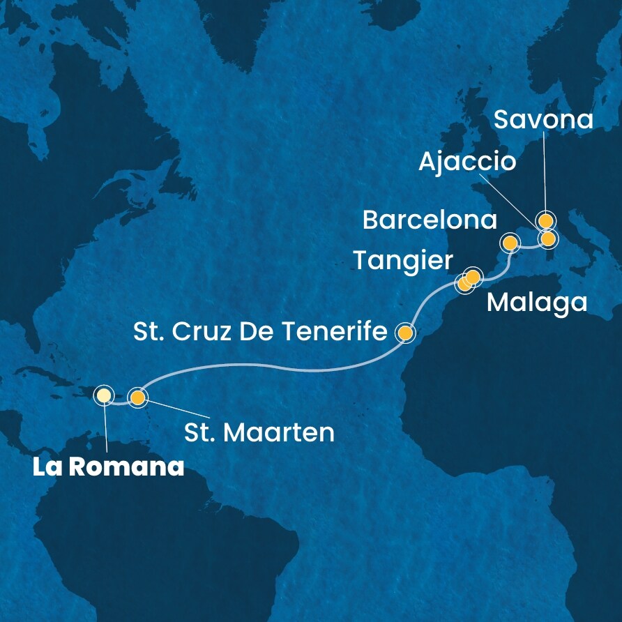 | 12. den | Tangier (Maroko) | 09:00 | 18:00 |