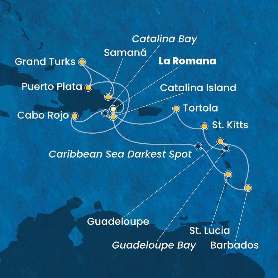 | 8. den | La Romana (Dominikán.rep.) | 08:00 | 23:59 |