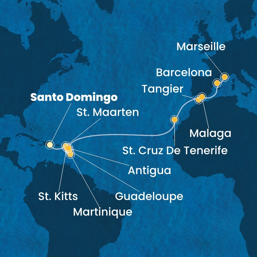 | 14. den | Santa Cruz de Tenerife (Španělsko) | 10:00 | 18:00 |