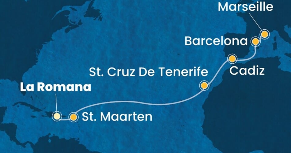 | 12. den | Cadiz (Španělsko) | 14:00 | 20:00 |