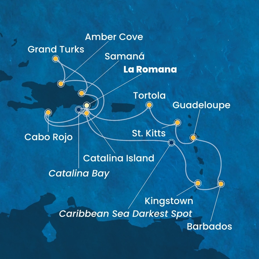 | 9. den | Catalina Island (Dominikán.rep.) | 08:00 | 17:00 |