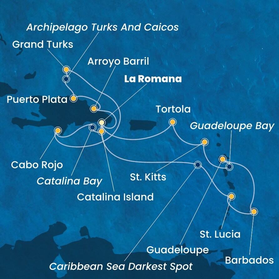 | 8. den | La Romana (Dominikán.rep.) | 08:00 | 23:59 |