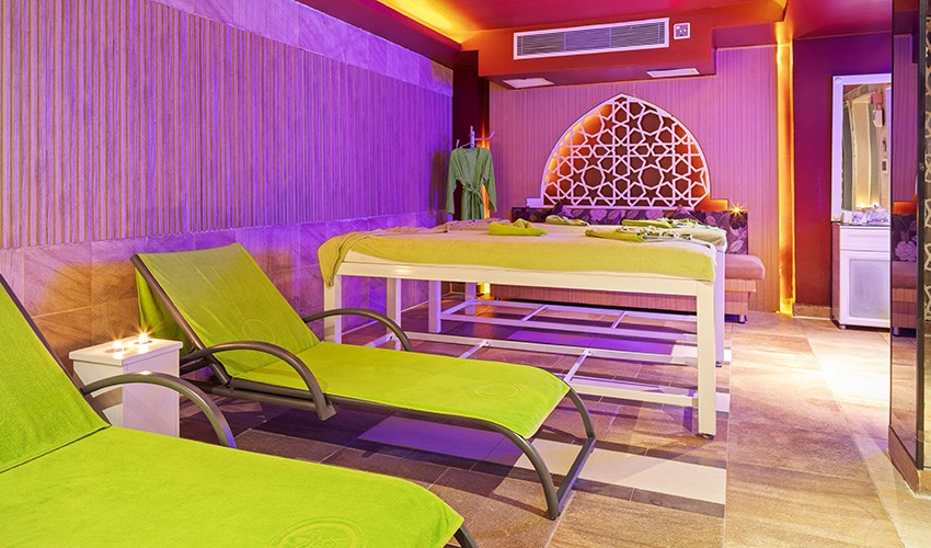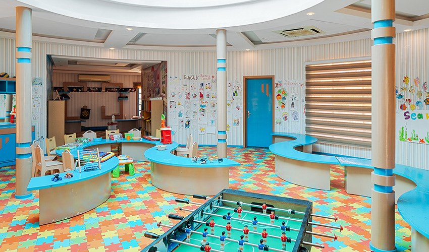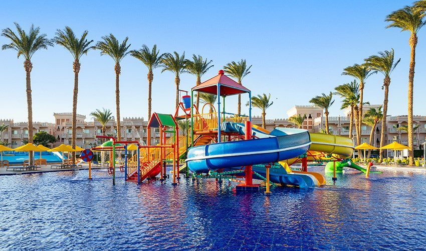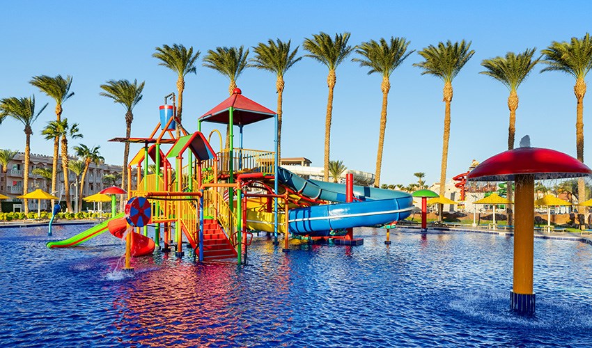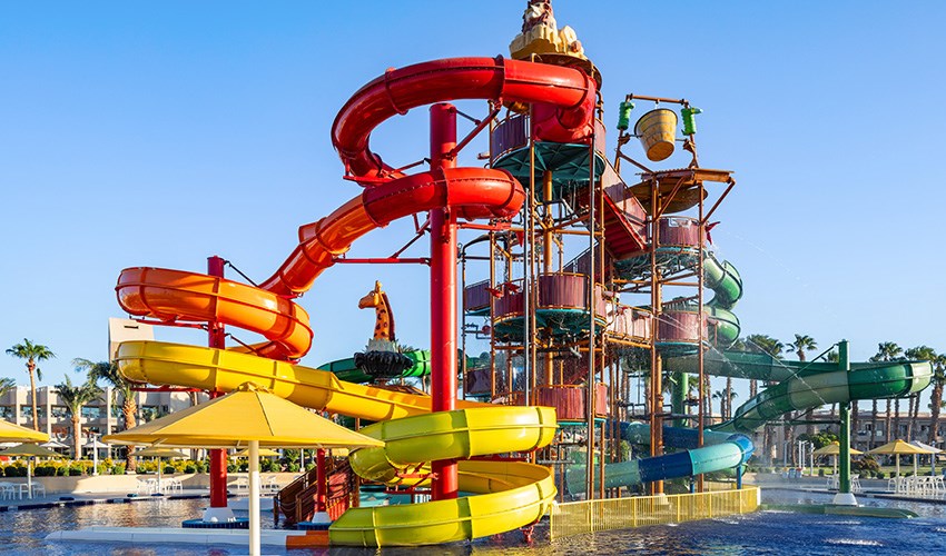 6 bazénů (z toho 1-3 občasně vyhřívané), dětský bazén, skluzavky, (lehátka, slunečníky a osušky u bazénů i na pláži zdarma), jacuzzi