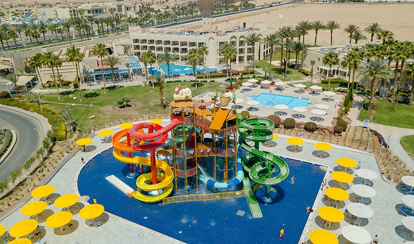 Komfortně vybavený čtyřhvězdičkový hotel zaručuje kvalitní služby. Skládá se z hlavní budovy a několika přilehlých budov, které leží v krásné udržované zahradě. Vlastní písečná pláž s pozvolným vstupem do moře leží přímo u hotelu. Hosté mohou využít vstup do aquaparku za poplatek, který zahrnuje vstup do aquaparku, stravu a dopravu. Centrum letoviska Hurghada, kam vás doveze hotelový hotelový autobus za poplatek, je vzdálené cca 10 km. Nákupní možnosti najdete v blízkosti hotelu. Doporučujeme rodinám s dětmi, ale také milovníkům windsurfingu a potápění.