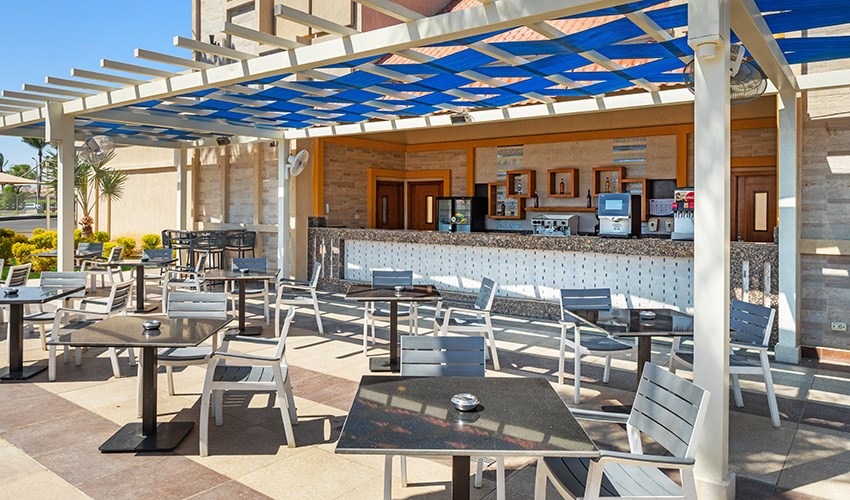 All inclusive – snídaně, obědy a večeře formou bufetu. Pozdní snídaně, lehké občerstvení během dne. Neomezené množství rozlévaných nealkoholických a vybraných místních alkoholických nápojů v místech a časech určených hotelem (10:00–24:00).