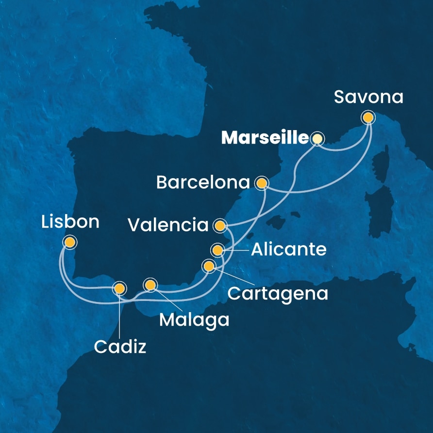 | 9. den | Alicante (Španělsko) | 09:30 | 16:30 |