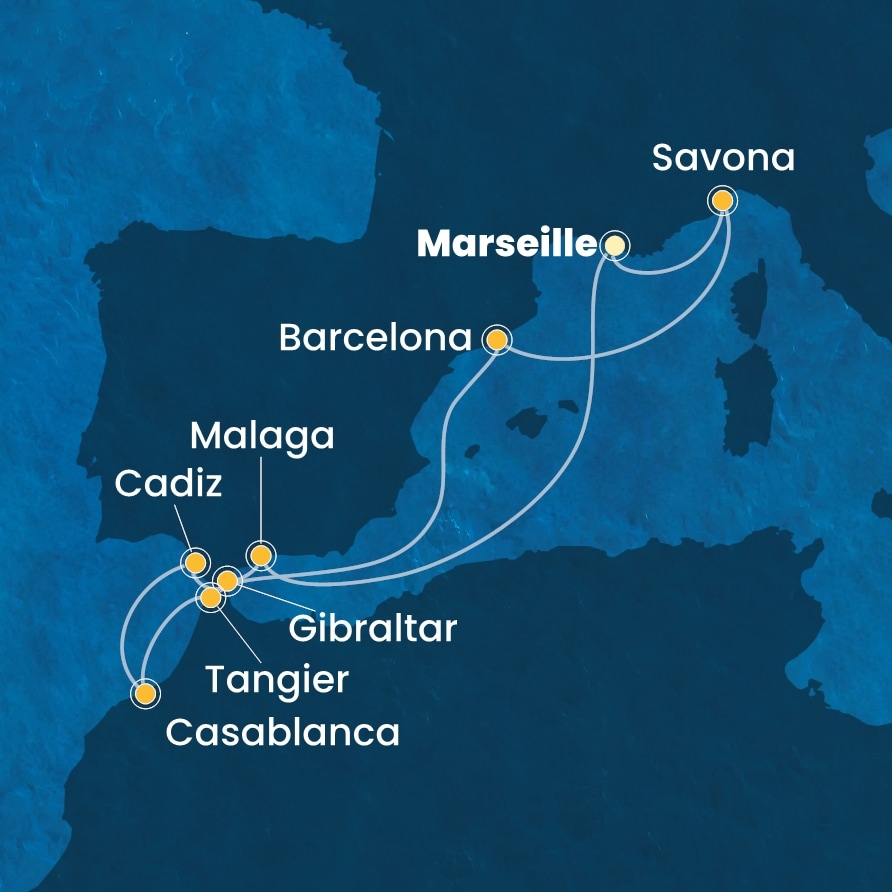 | 7. den | Tangier (Maroko) | 08:00 | 20:00 |