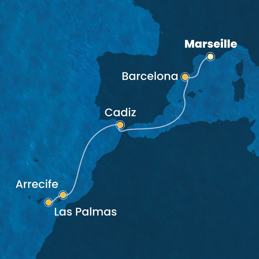 | 4. den | Cadiz (Španělsko) | 07:00 | 13:00 |