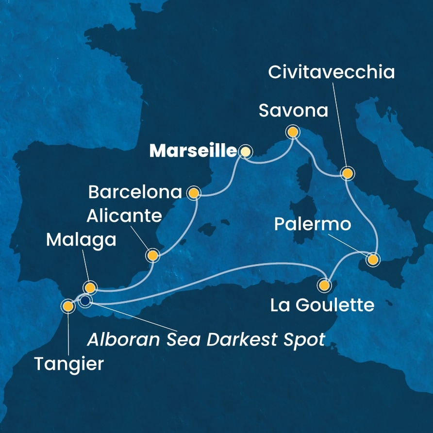 | 8. den | La Goulette (Tunisko) | 08:00 | 16:00 |