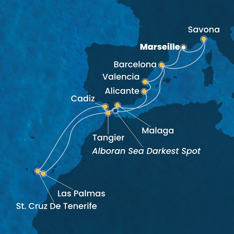 | 10. den | Tangier (Maroko) | 09:00 | 20:00 |