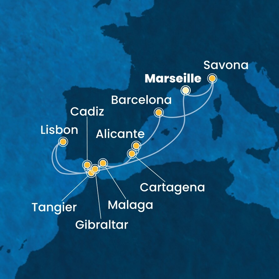 | 9. den | Gibraltar (Velká Británie) | 07:00 | 13:30 |