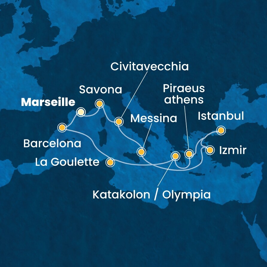 | 6. den | Izmir (Smyrna) (Turecko) | 12:00 | 18:00 |