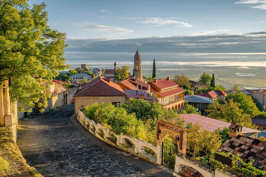 Cestou do naší první gruzínské zastávky si dáme výborný oběd v místní restauraci a pak zamíříme do Signagi , malebného městečka přezdívaného „Město lásky“ .