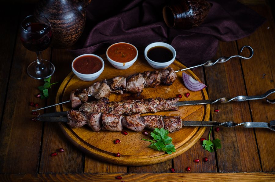 Nebo můžeme ochutnat mtsvadi – gruzínský šašlik , grilované špízy z vepřového, hovězího nebo jehněčího masa. Často se připravuje nad otevřeným ohněm, podává se s cibulí, solí a omáčkami (například s tradiční gruzínskou švestkovou omáčkou tkemali ).