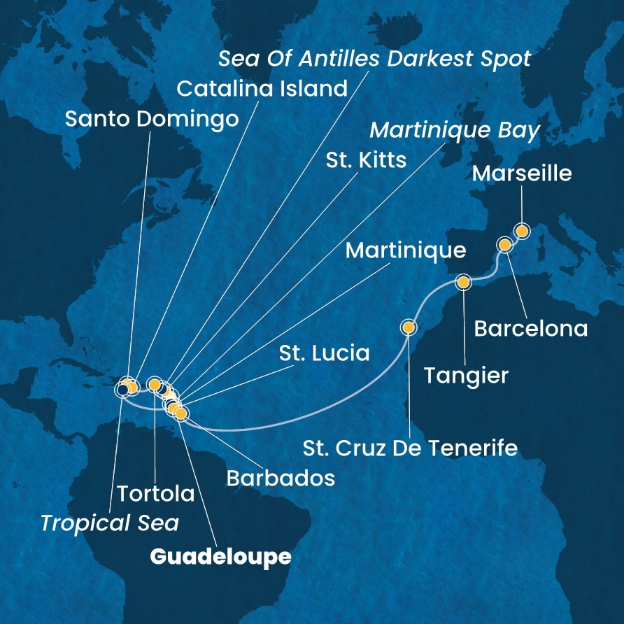 | 7. den | Fort-de-France (Martinik) | 08:00 | 22:30 |