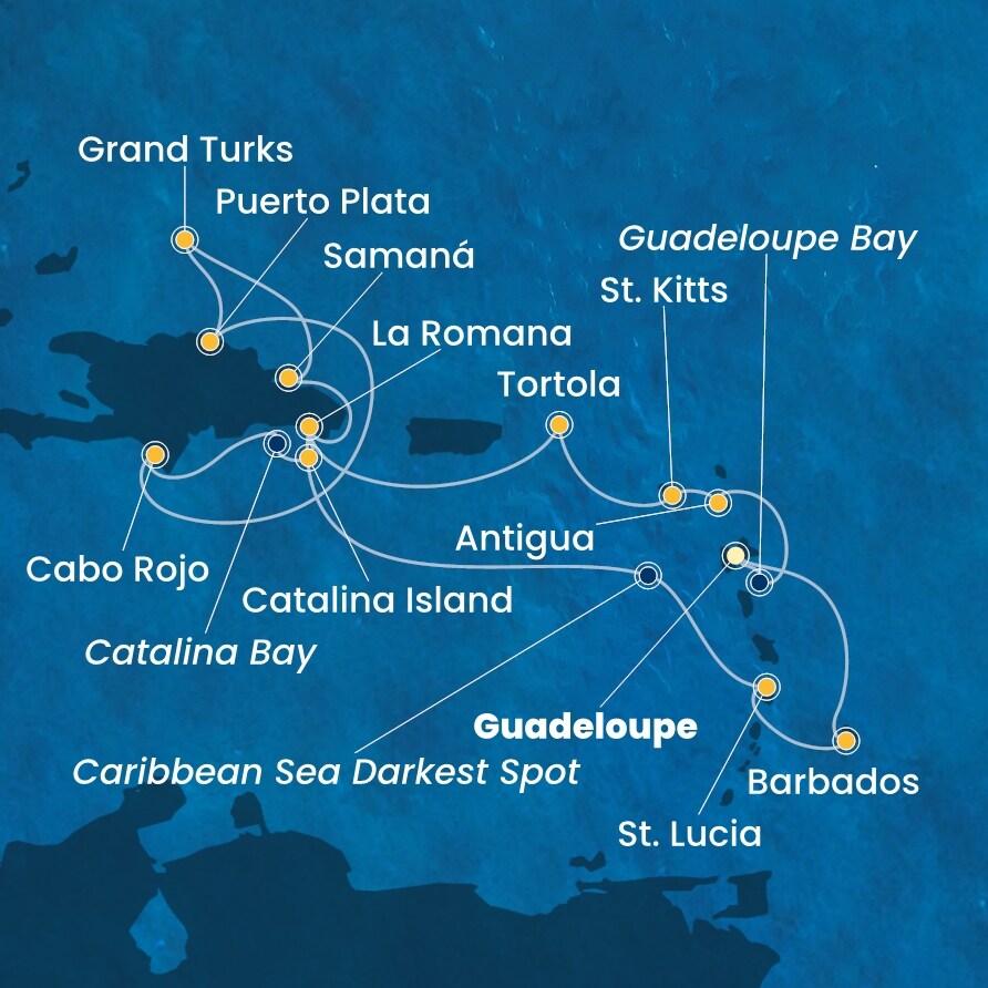| 6. den | Catalina Island (Dominikán.rep.) | 08:00 | 18:00 |