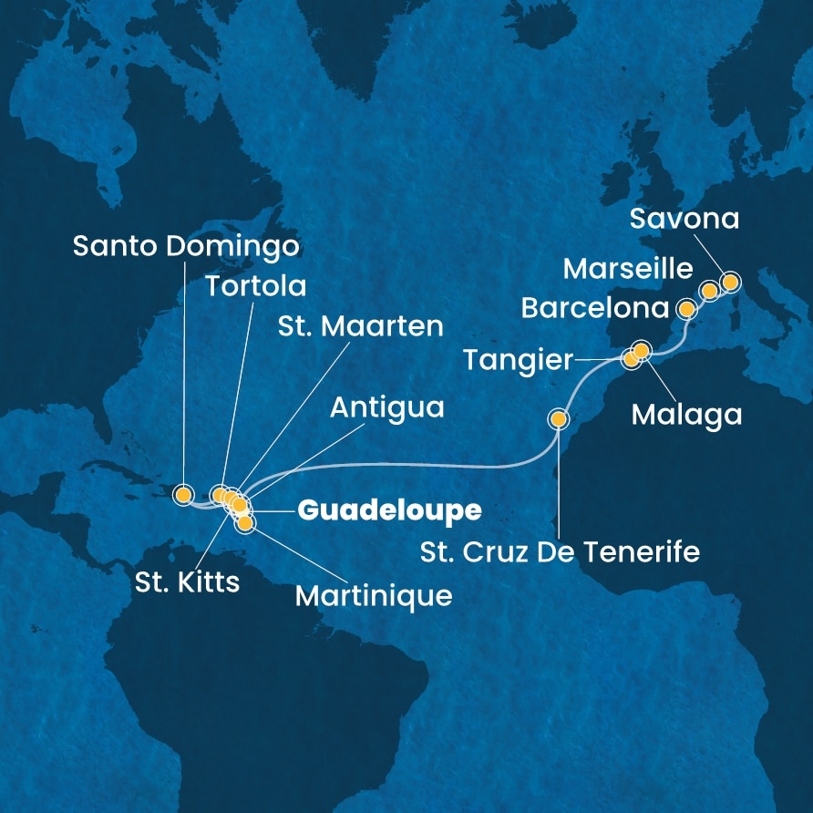 | 8. den | Pointe-à-Pitre (Guadeloupe) | 08:00 | 23:00 |