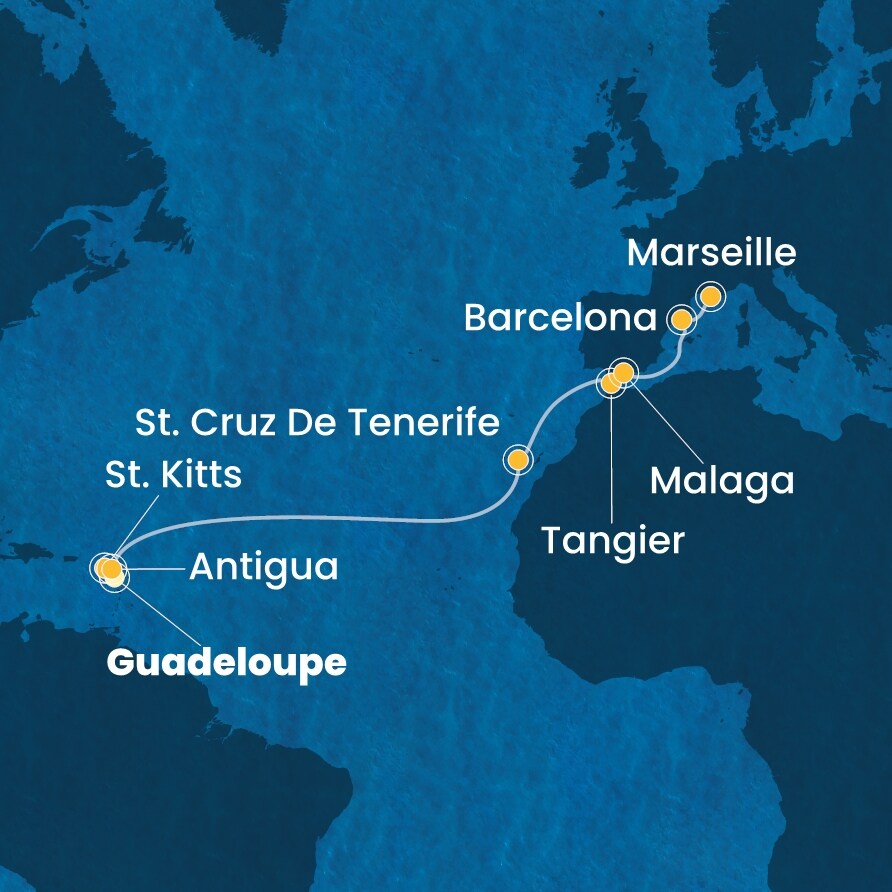 | 1. den | Pointe-à-Pitre (Guadeloupe) | - | 23:00 |