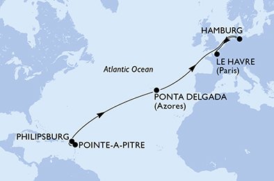 | 13. den | Hamburk (Německo) | 08:00 | 18:00 |