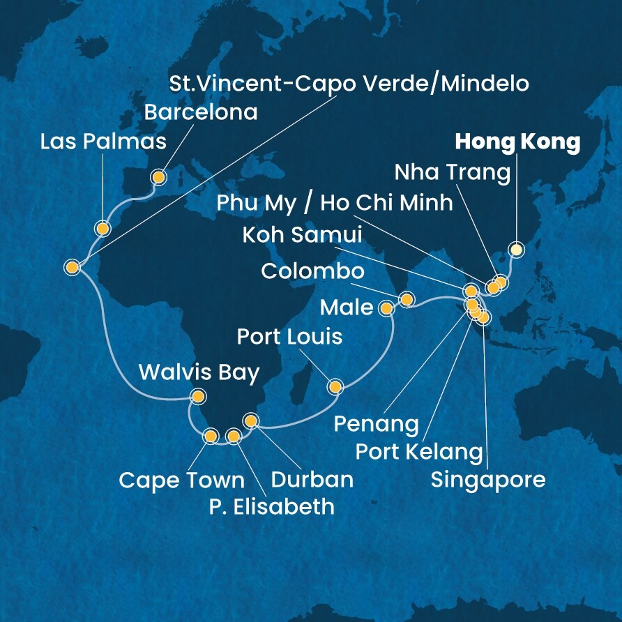 | 26. den | Durban (Jihoafrická r.) | 08:00 | 20:00 |