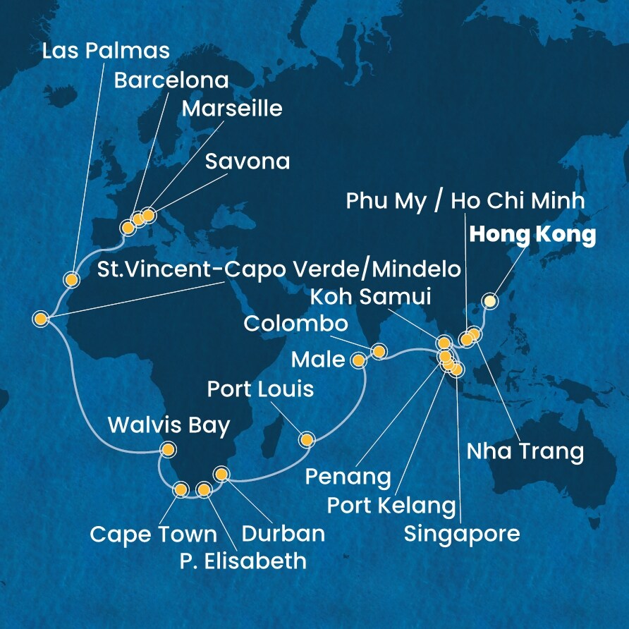 | 26. den | Durban (Jihoafrická r.) | 08:00 | 20:00 |