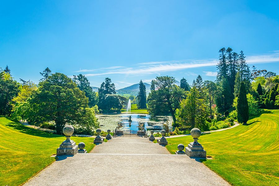 Poté se vydáme na prohlídku zahrad hrabství Powerscourt , s přilehlými zahradami a nedalekým vodopádem. Terasovité zahrady s výhledem na pohoří Wiclow Moutains byly upraveny po vzoru paláce ve Versailles a zámku Schönbrunnu ve Vídni. Byly vytvořené během viktoriánské éry a jsou považovány za jedny z nejkrásnějších v Irsku .