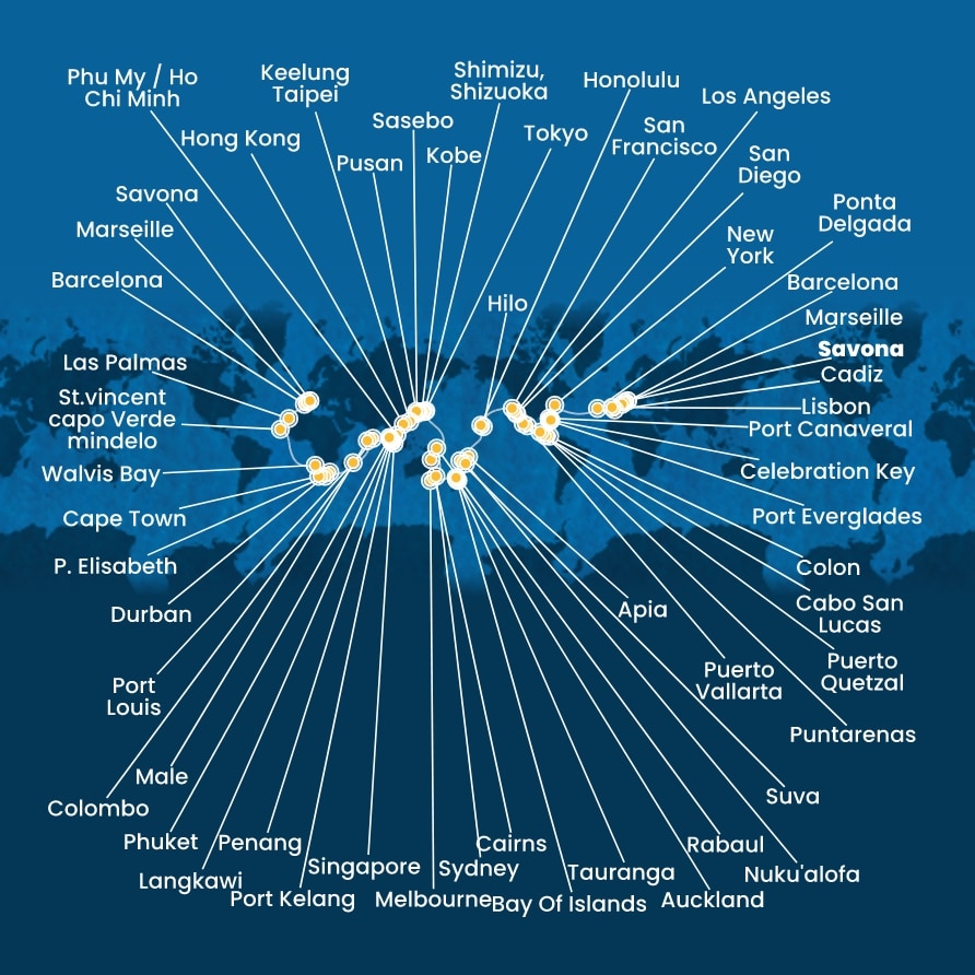 | 116. den | Durban (Jihoafrická r.) | 08:00 | 20:00 |