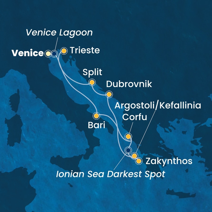 | 8. den | Terst (Itálie) | 09:00 | - |
