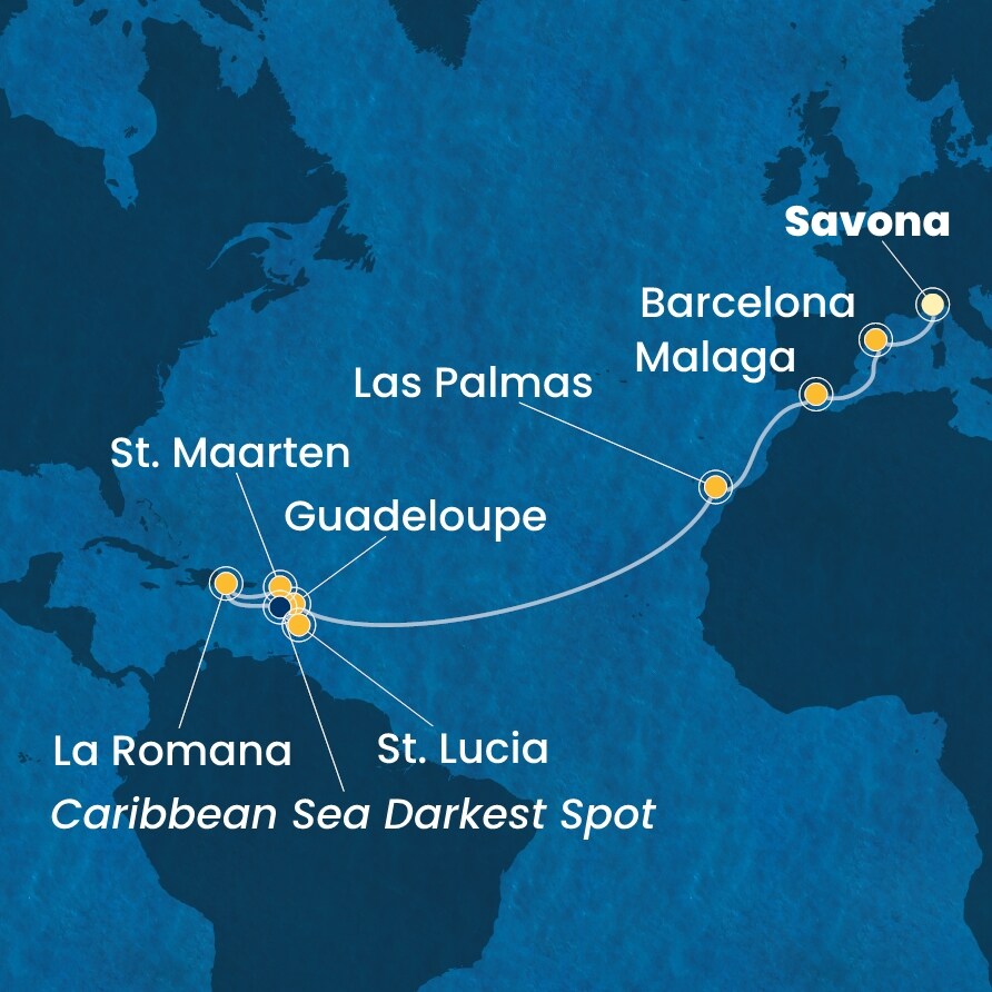 | 19. den | Pointe-à-Pitre (Guadeloupe) | 08:00 | - |