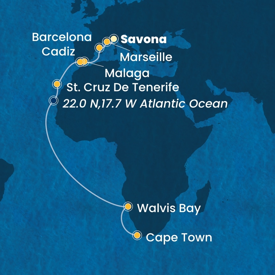 | 22. den | Kapské město (Jihoafrická r.) | 10:00 | - |