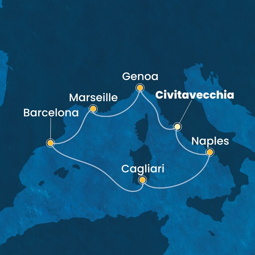 | 6. den | Cagliari (Itálie) | 07:00 | 16:00 |