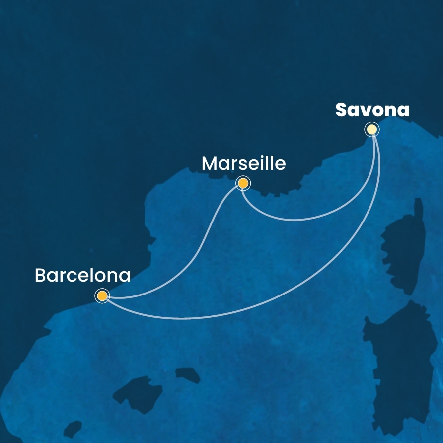 Savona (Itálie) - Marseille (Francie) - Barcelona (Španělsko) - Savona (Itálie).
