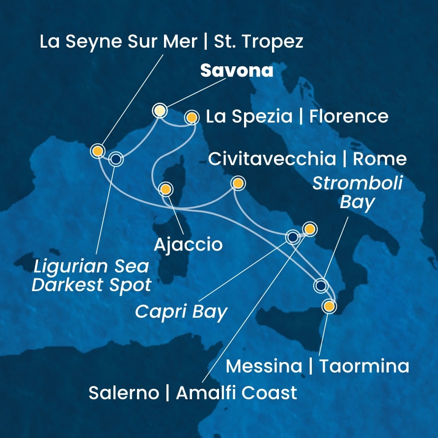 | 9. den | Savona (Itálie) | 08:30 | - |