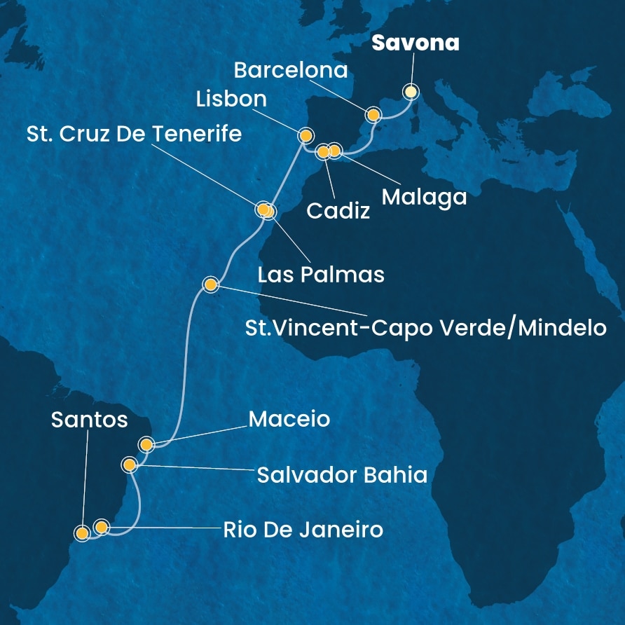 | 19. den | Salvador de Bahia (Brazílie) | 07:00 | 13:00 |